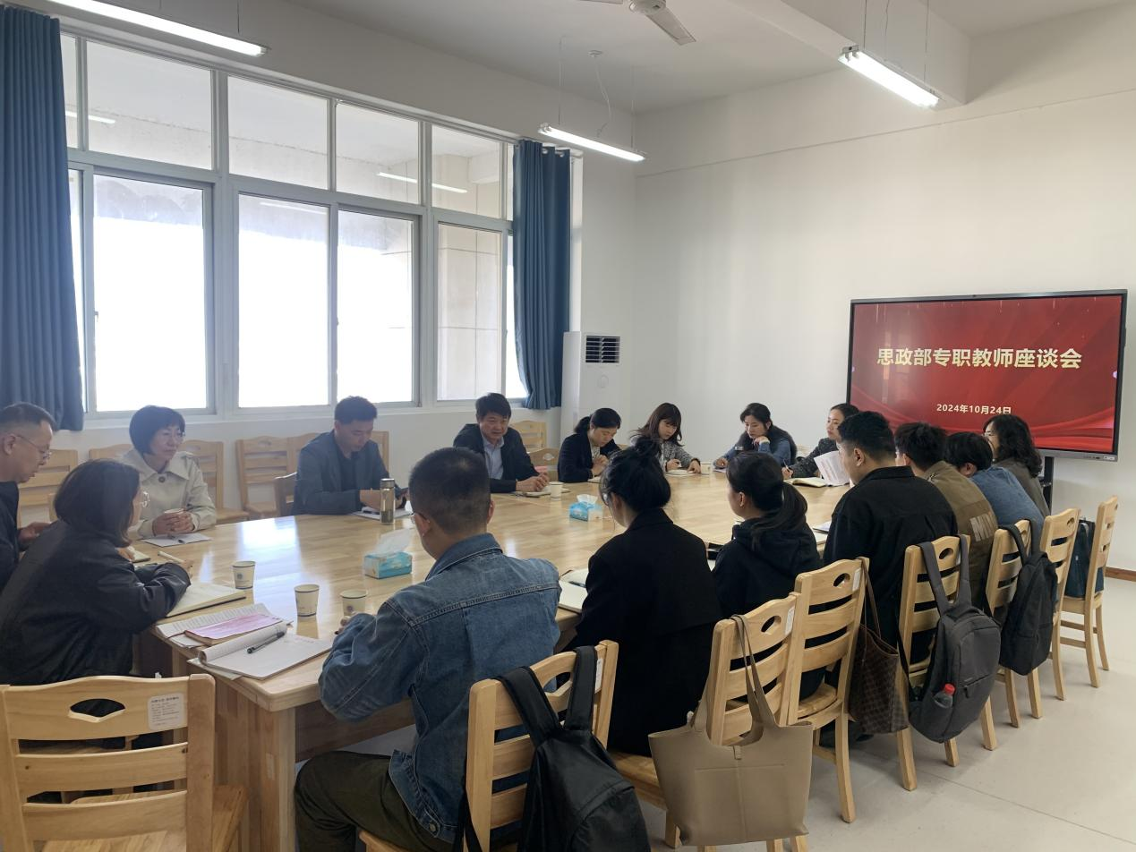 为深入学习贯彻习近平总书记对学校思政课建设的重要指示精神和新时代学校思政课建设推进会精神,10月24日,学院院长张兵深入思政部进行工作调研,并参加专职思政课教师座谈会。教务处处长程进、思政部主要负责同志及全体专职思政课教师参加会议。