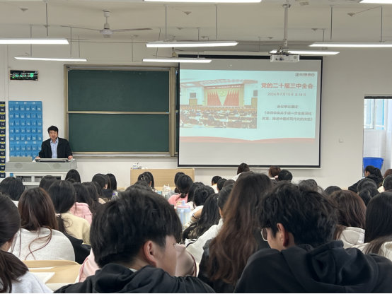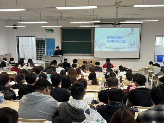 11月14日,张兵为学生讲授“加快发展新质生产力”,深入阐释什么是新质生产力、为什么要发展新质生产力、怎样发展新质生产力等内容。引导学生密切关注新质生产力的发展趋势,主动融入这一发展浪潮,不断提升专业知识和技能,与历史同向、与祖国同行、与人民同在,为实现经济社会高质量发展做出贡献。