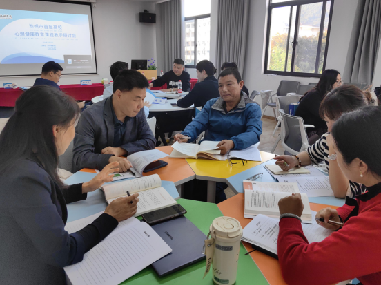 在最后的分组研讨及集体备课环节,依据大学生心理健康教育的课程体系,与会人员被分为5个小组,进行教学研讨及集体备课,经过热烈交流讨论后,每个小组的代表报告了小组的研讨结果。